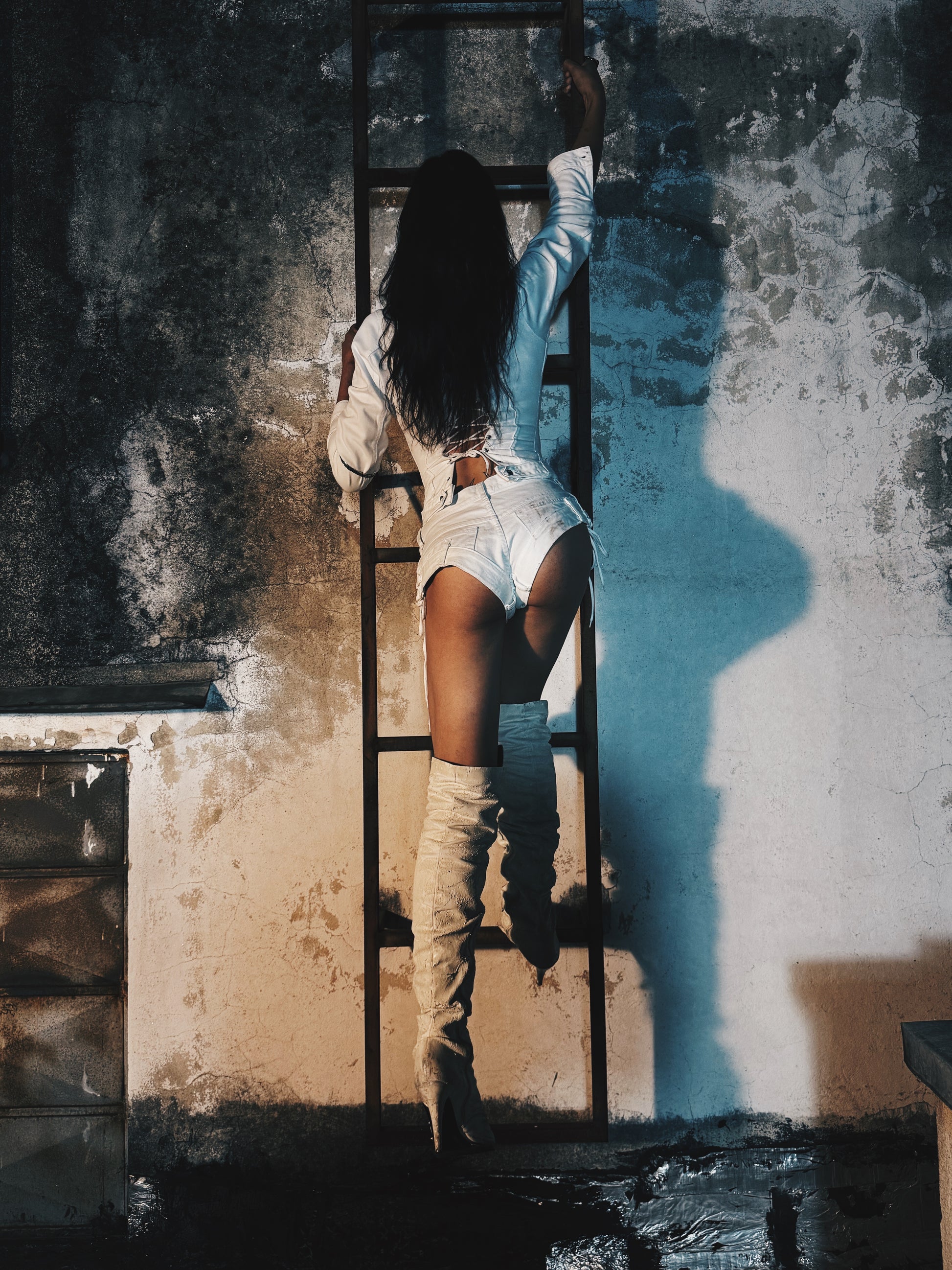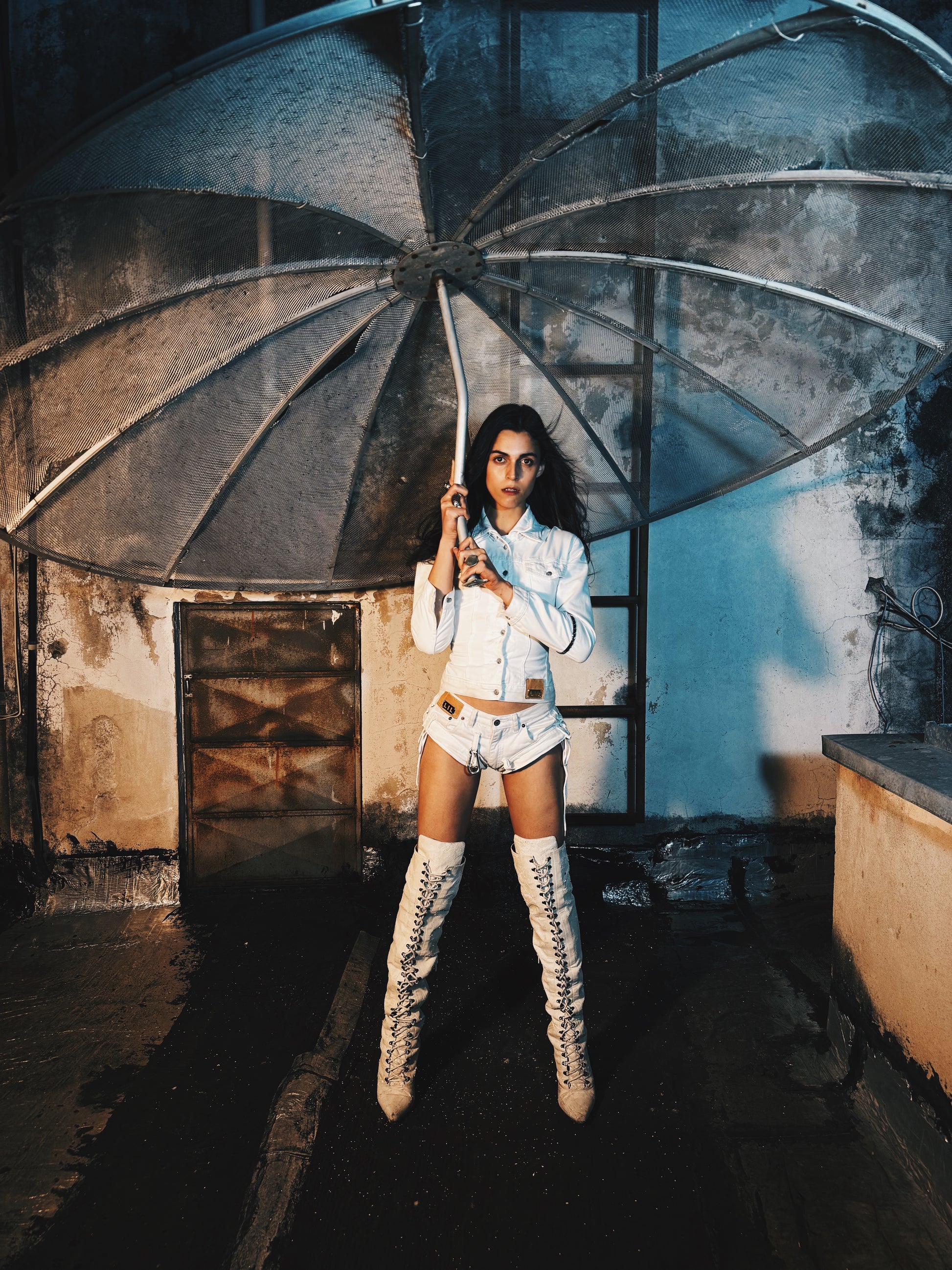 Remodelado e recriado a partir de uma calça jeans descartada, com cintura recriada e modelagem adaptada recortada em "hot pants".