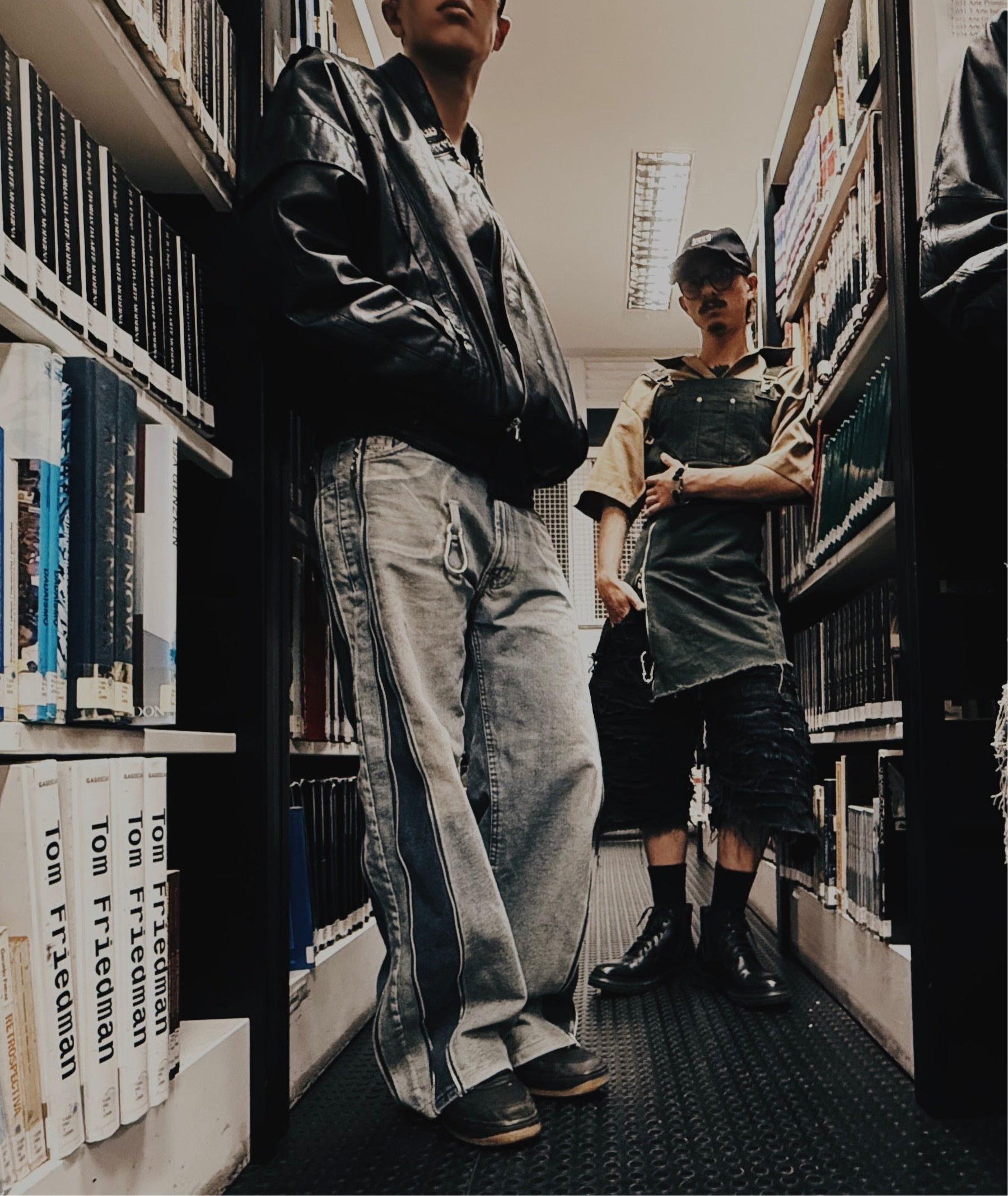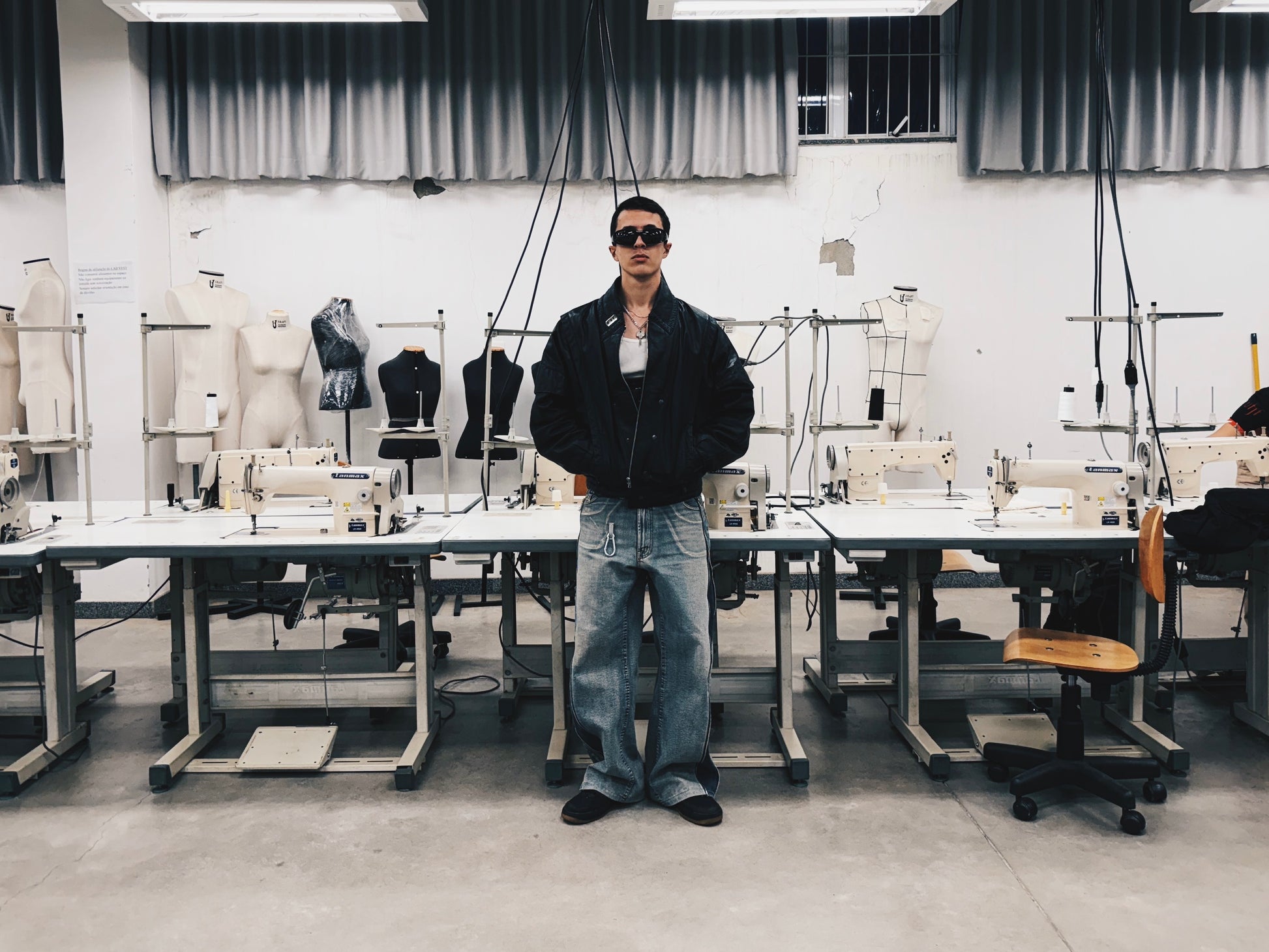 O design (em upcycling) conta com modelagem ampla, com ajuda de quatro fendas de ziper nas laterais (duas extras).